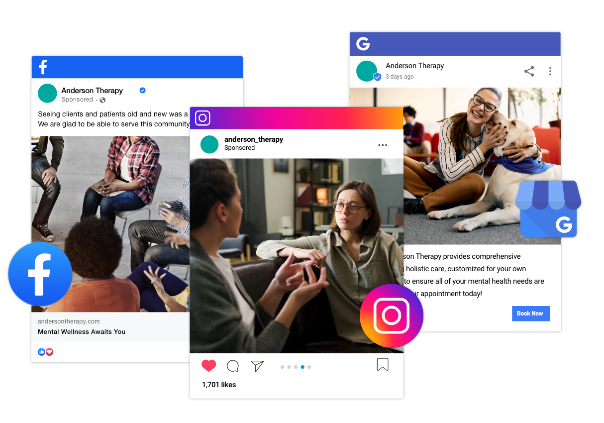 Build a robust presence on popular social media apps for your practice. Grow your following and keep them engaged with a consistent Facebook, Instagram and X posting strategy.